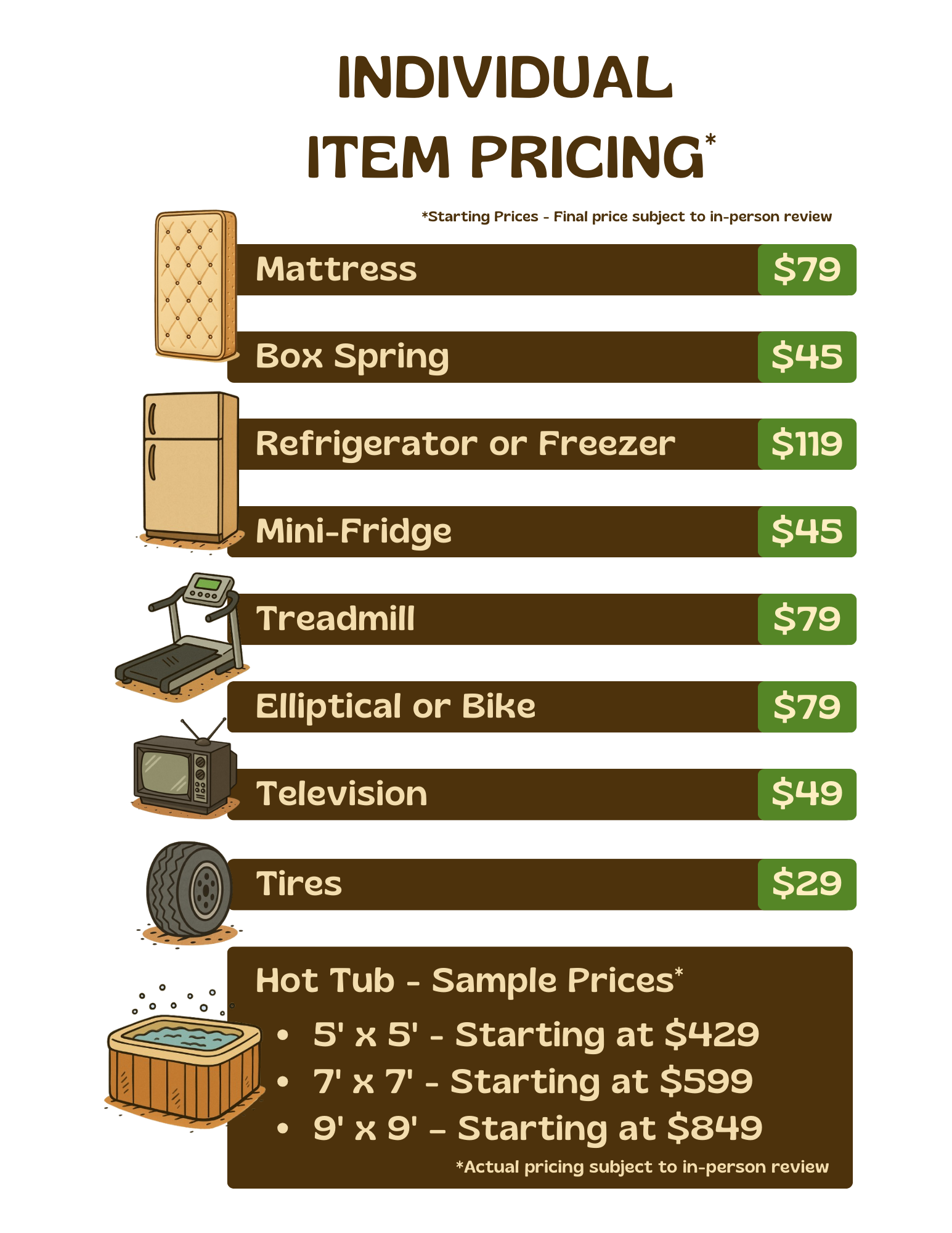 Get Quote Get your free quote today: Get Quote We can only give an exact quote after we have reviewed the items in person. Prices subject to change until final in-person review has taken place